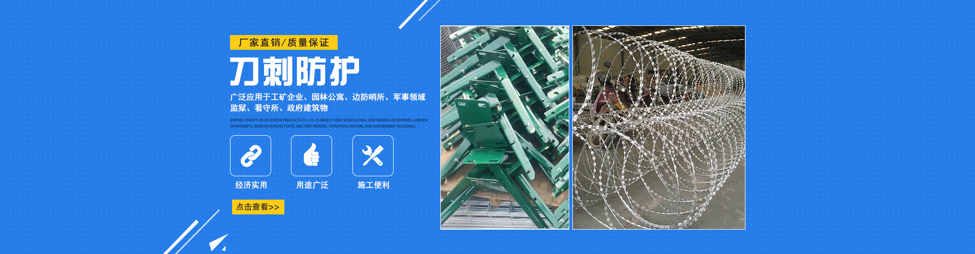 刀片刺繩?是一種新型防護網(wǎng)產(chǎn)品,具有生產(chǎn)工藝復雜、防護效果好、施工方便等優(yōu)點。如果你想知道,請看以下內(nèi)容。